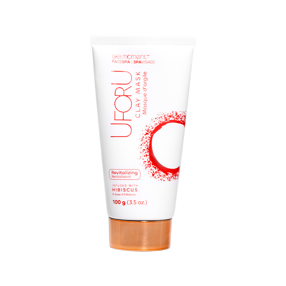 UFORU Revitalizing Clay Mask features Hibiscus extract, a gentle exfoliant that helps unclog pores and control oil production, promoting a younger and smoother looking complexion.